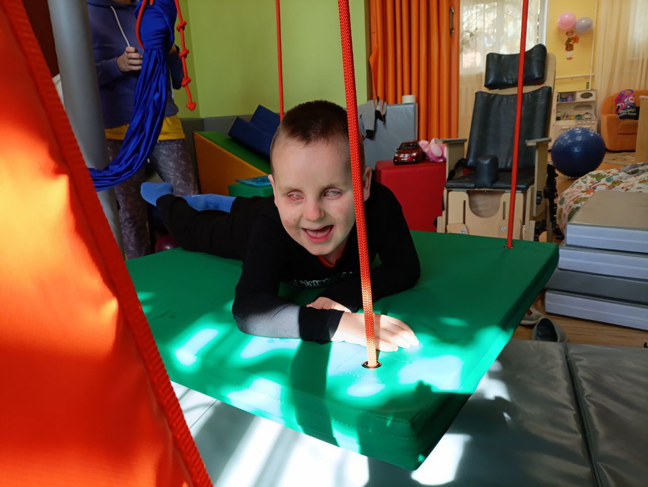 Артем имеет серьезные нарушения здоровья и развития. Он не видит, не ходит и не говорит. Мама Марина и все специалисты Центра буквально бьются за каждый новый навык. В проекте Артем с самого начала и даже он начал показывать позитивные изменения. Что уж говорить, если такой ребенок сам выбрал себе любимое местечко в Доме Совы: это качающаяся платформа. это просто удивительно, какие эмоции выдает мальчишка, когда ему помогают забраться на платформу и слегка покачивают! Восторг выражает все его тело, он хлопает в ладошки, смеется, машет ручками и искренне радуется. Когда приходит время спускаться, он проявляет протест, не хочет уходить, может даже заплакать.